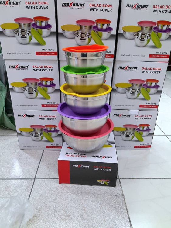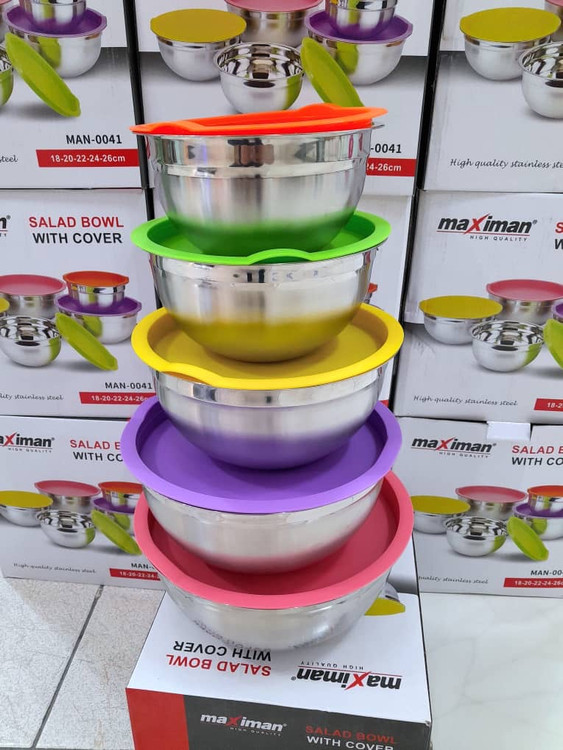 ست 5 تکه کاسه استیل درب رنگی maximan
